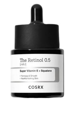 Target signs of aging and boost skin renewal with COSRX The Retinol 0.5 Oil. This highly concentrated facial oil features 0.5% stabilized pure retinol to visibly reduce fine lines, wrinkles, and rough skin texture while enhancing elasticity. Enriched with squalane and tocotrienol (a potent form of vitamin E), it nourishes and soothes the skin, reducing irritation commonly associated with retinol use. Ideal for nighttime use, this anti-aging powerhouse supports smoother, firmer, and more radiant skin.