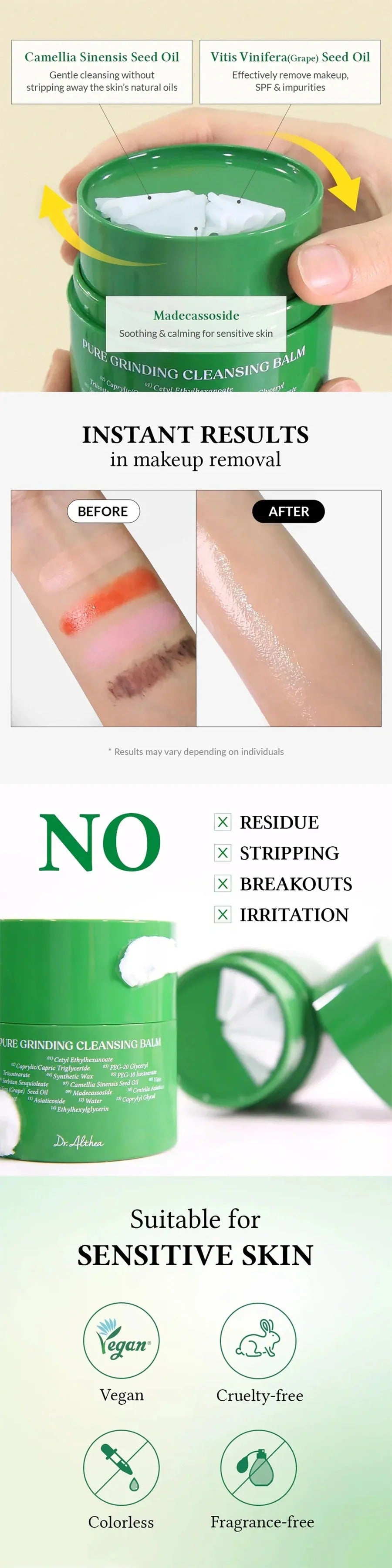 - 🧼 Gentle yet Effective Cleansing: The Pure Grinding Cleansing Balm effortlessly removes makeup and impurities without stripping the skin.