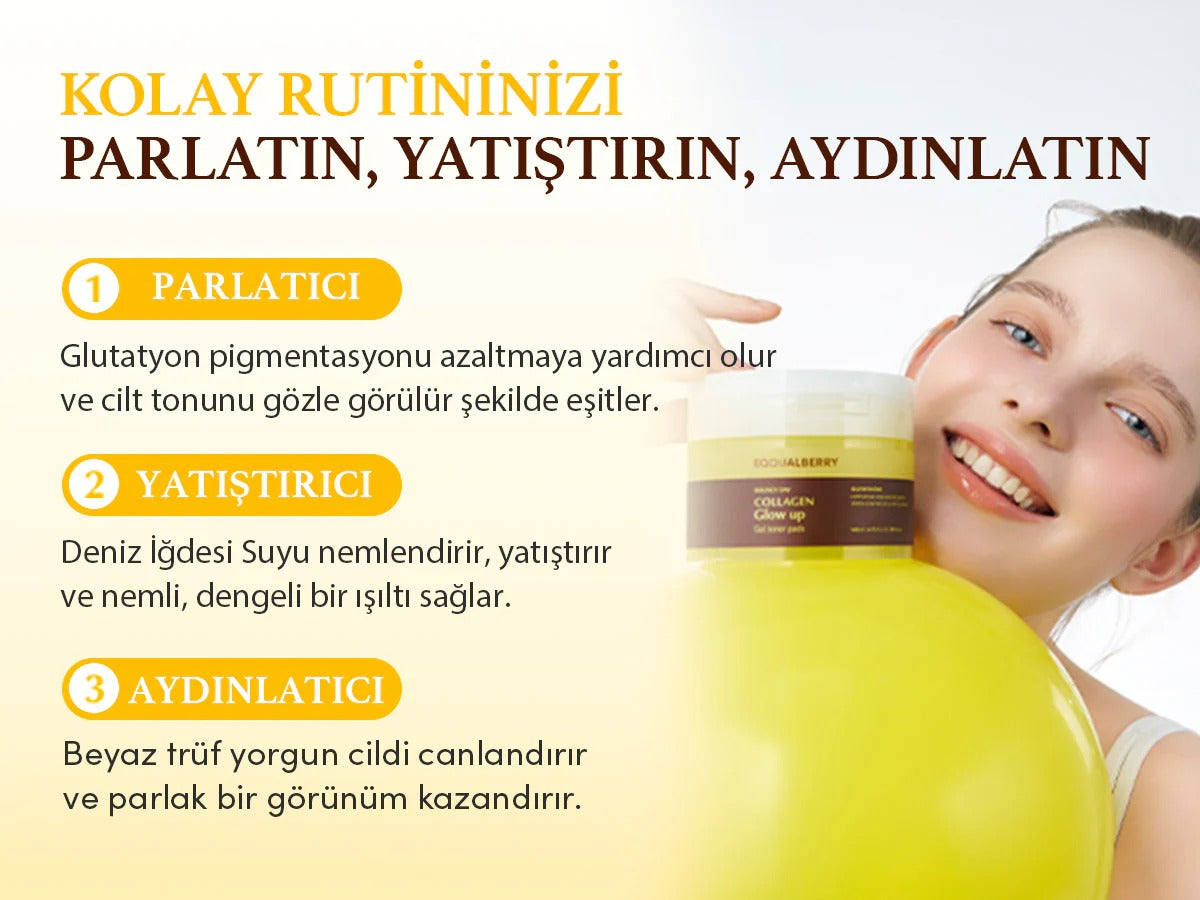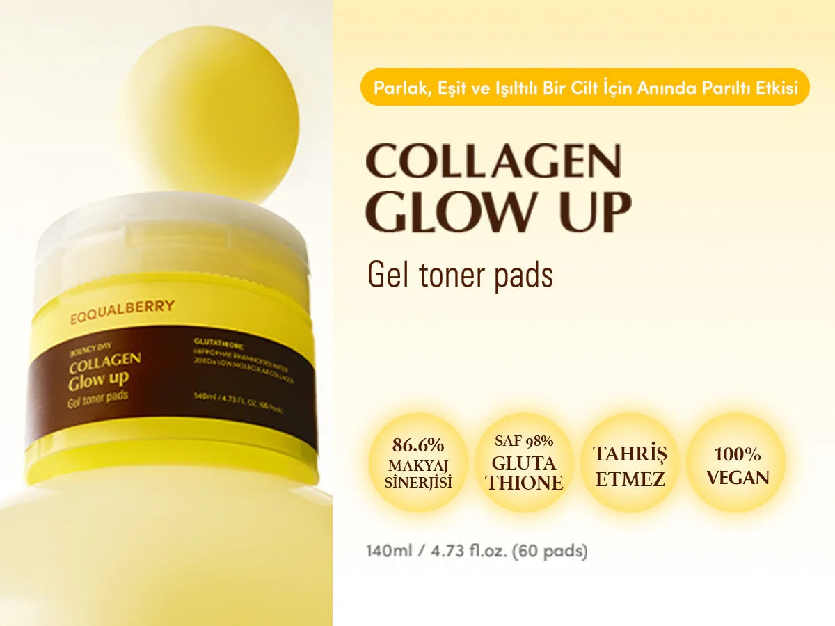 EQQUALBERRY Collagen Glow Up Gel Toner Pads – Anti‑Pore + Smooth Finish | 60 Pads
