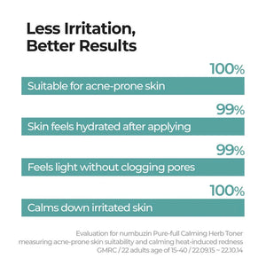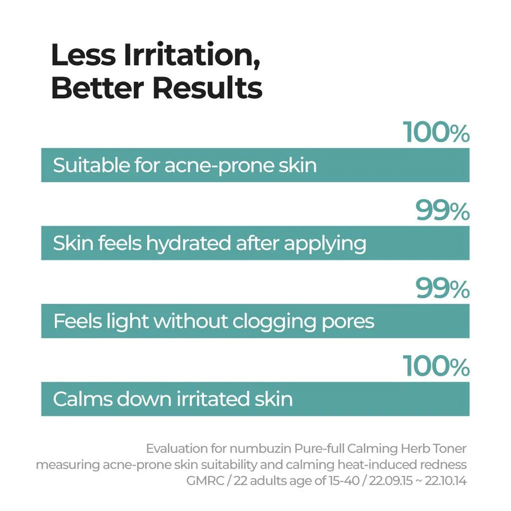 Experience the soothing embrace of nature with the Numbuzin No.1 Pure-Full Calming Herb Toner. This gentle, low pH (5.5) toner is meticulously formulated to calm irritated skin, balance oil and moisture levels, and provide deep hydration. Enriched with 93% herbal extracts, it's your first step towards a clearer, healthier complexion.
