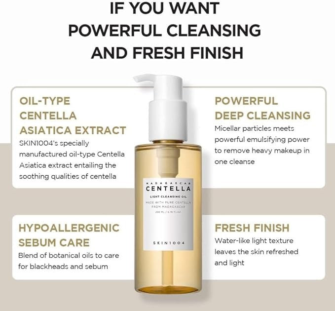 Apply the Centella Light Cleansing Oil to dry skin. Gently massage to dissolve makeup and impurities, then rinse with lukewarm water. -
