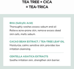 Water, Myristic Acid, Glycerin, Potassium Hydroxide, Stearic Acid, Glyceryl Monostearate, Propanediol, Lauryl Hydroxysultaine, Palmitic Acid, Sodium C14-16 Olefin Sulfonate, Potassium Benzoate, Salicylic Acid(0.45%), Butylene Glycol, Sorbitol, 1,2-Hexanediol, Sodium Chloride, Centella Asiatica Extract(0.2%), Acrylates/C10-30 Alkyl Acrylate Crosspolymer, Melaleuca Alternifolia Leaf Oil(0.2%), Cetearyl Alcohol, Melaleuca Alternifolia (Tea Tree) Leaf Water(0.09%), Melia Azadirachta Leaf Extract, Hydrogenated Polydecene, Arachidic Acid, Lauric Acid, Sodium Citrate, Melia Azadirachta Flower Extract, Trisodium Ethylenediamine Disuccinate, Oleic Acid, Theobroma Cacao Seed Extract,Dextrin, Citrus Acid, Disodium EDTA, Pentylene Glycol, Caprylyl Glycol, Chamaecyparis Obtusa Water, Pinus Palustris Leaf Extract